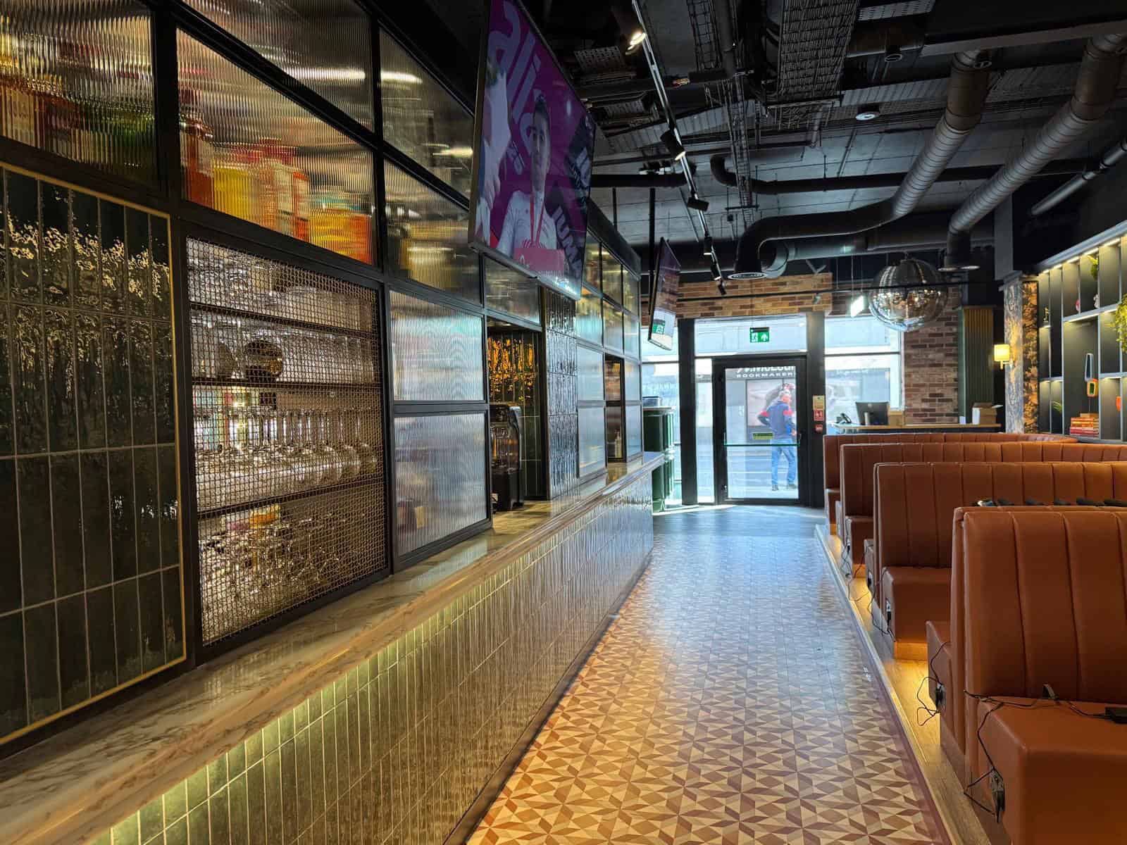 One of the standout elements of the project is the extensive specialist joinery, all manufactured in-house by our expert workshop team. This includes bespoke bars, DJ booth, stage and surround, wall panelling, book shelving, ceiling features, and custom dart surrounds, giving the venue a cohesive, hand-crafted aesthetic that looks fantastic.
